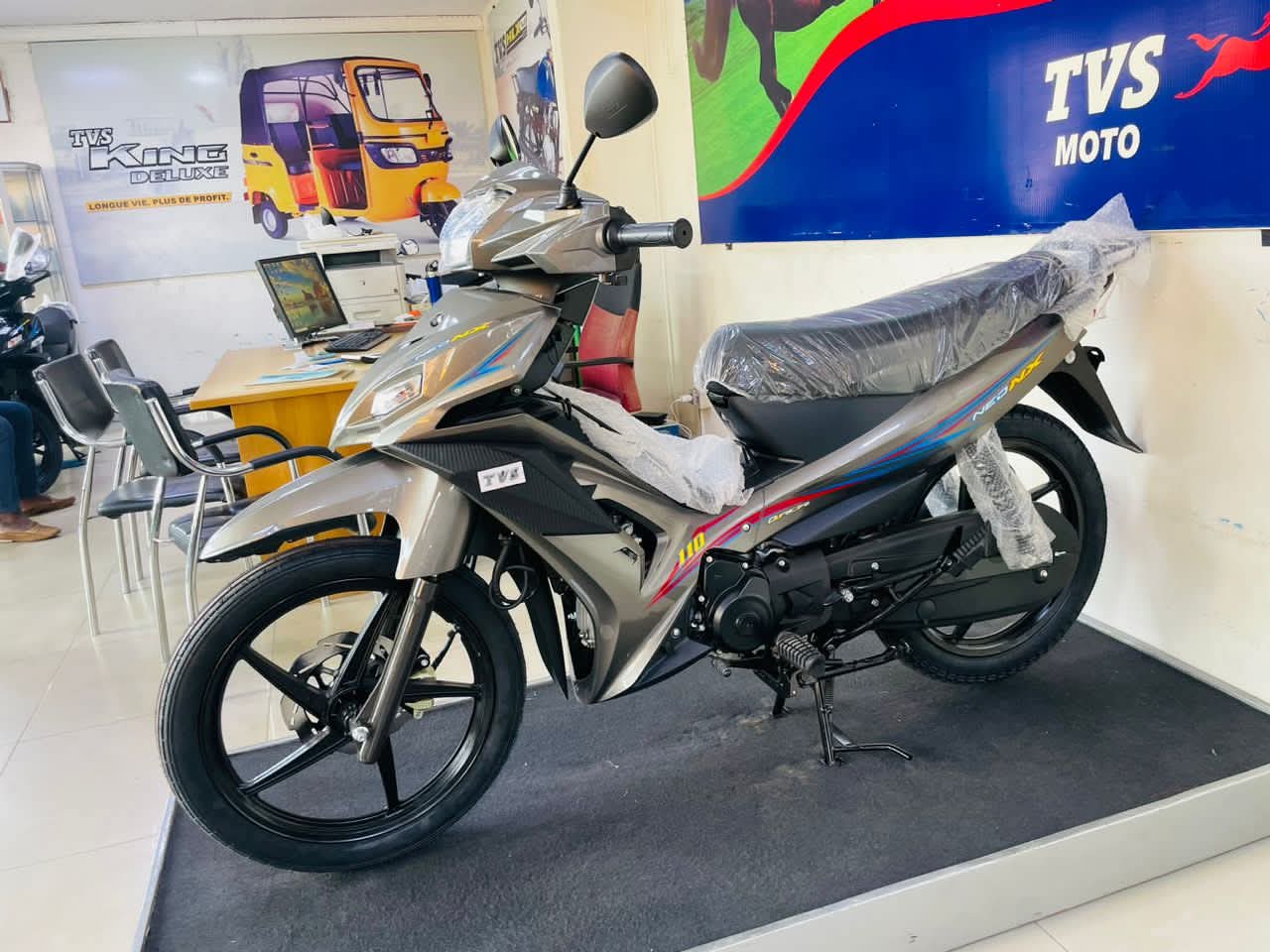 Conquer your daily commute with the stylish and efficient TVS Neo NX 110. Featuring a reliable 110cc engine, sporty graphics, and a front disc brake for enhanced safety, it's the perfect ride for city streets. Get ready for a smooth and stylish journey